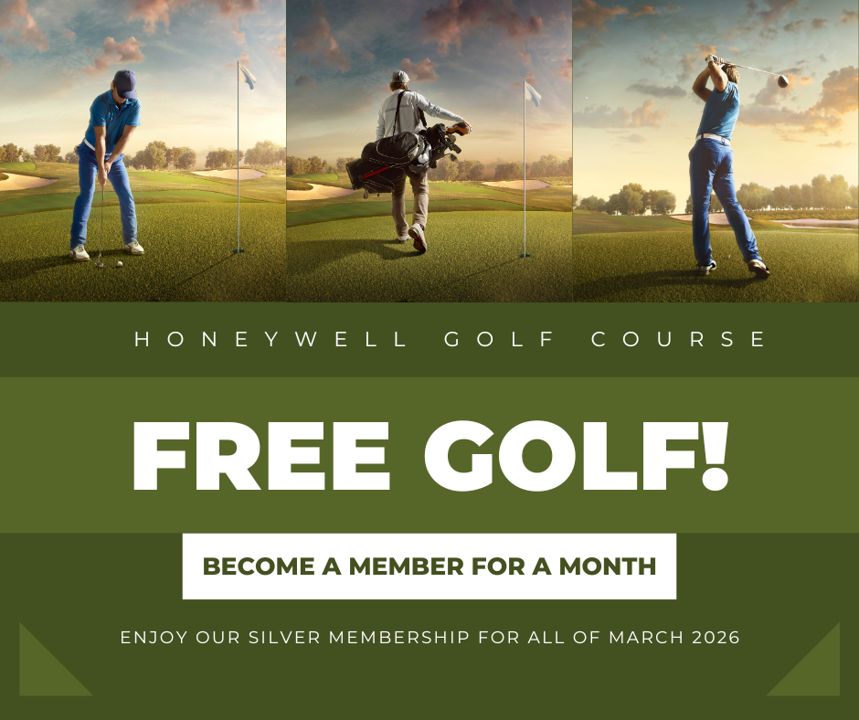 Become a Silver Member for the month of March 2026 for absolutely no cost to you. Enjoy unlimited golf Monday-Friday and after 12:00pm on Saturday & Sunday. While Honeywell is an extremely walkable golf course, you can still rent a cart on days that you play. Cart fees are $9 for 9 hole and $18 for 18 holes per person. While tee times are not required we strongly encourage members to make tee times in advance to ensure we have space for you.
